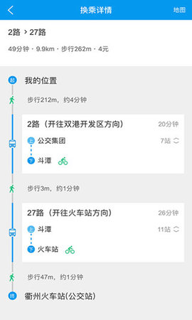 5、在衢州行app官方版输入你的目的地,看看所有经过的公交车。你可以选择任何一辆公交车。
