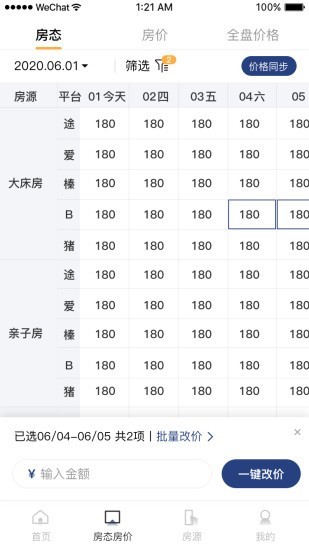 4.可以对房间的价格进行实时修改,非常的方便快捷。