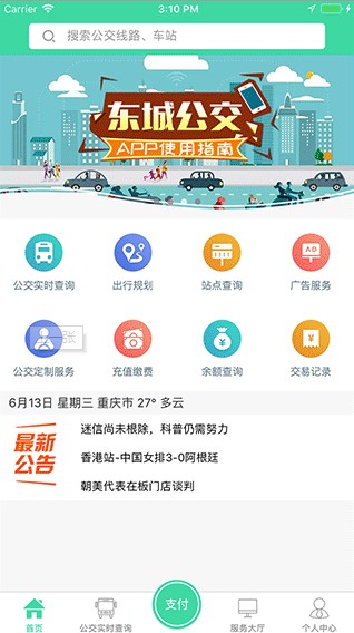 重庆东城公交app是由重庆东城公共交通有限公司开发的一款城市出行软件,在平台上很容易体验到公共交通查询效劳,能够在软件中充值公交卡、扫码、查站等功能,不再自觉等车,欢迎下载!