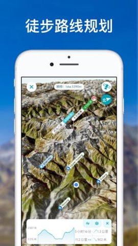 3、3d地图:获取未来山区影像地图,经过尖端技术支持的高精度地形模型,你可以快速控制山脉的真实地形,以最便当的方式探求山脉,知道途径、山峰、通道、观景地点和停车场。