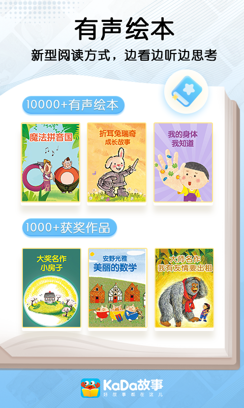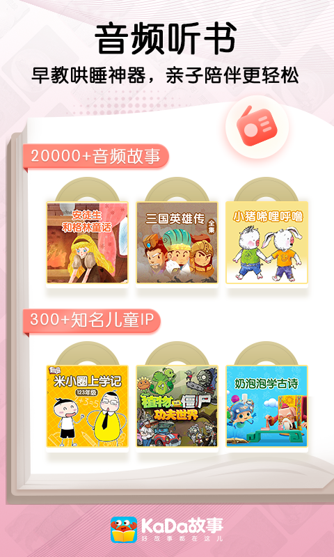 1.KaDa故事安卓版内容丰富,有1万多册有声绘本,2万多个音频故事,简直就是儿童掌上图书馆。