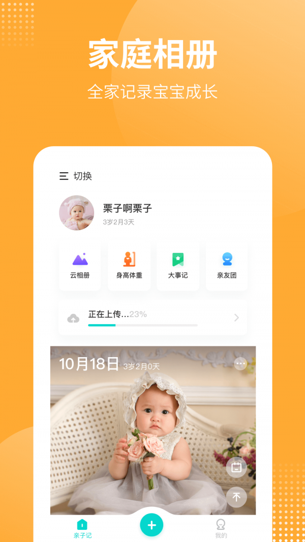 2.亲友共同关注,可邀请亲友共同关注和记录宝宝的成长。