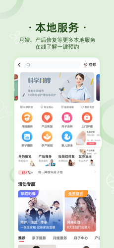 2.支持线上预约产后修复,月搜护理等产后服务项目,帮助产后妈妈们更好的恢复。