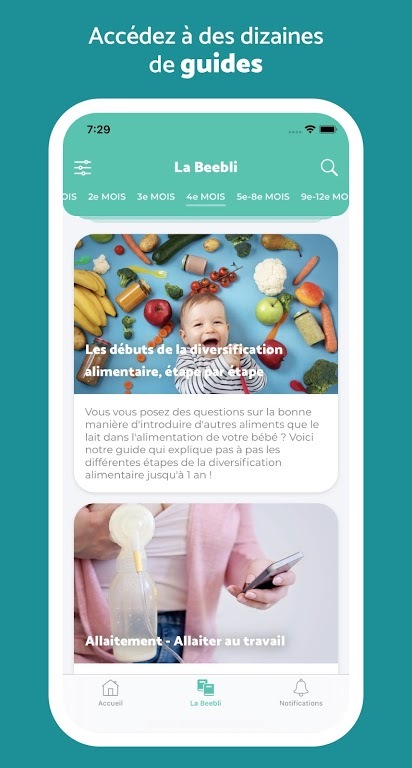 2、LA BEEBLI”:基本指南和教程,在婴儿出生前后,在任何时候都可以在“la Beebli”中找到150多份详细的指南和教程,帮助你在所有重要的情况下,帮助你做出最好的选择,让你的父母的日常生活更轻松。每周都有新的内容发布!