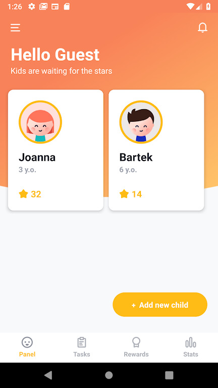 1、家长:从主面板中选择“I 'm a parent”。登录谷歌,Facebook或作为客人进入。通过“+添加新孩子”按钮添加您的孩子。转到“任务”并添加您的第一个任务。去“奖励”,给孩子奖励。应用程序现在是完全功能,从主面板你可以按下子卡。你可以确认任务,领取奖励,查看历史记录。