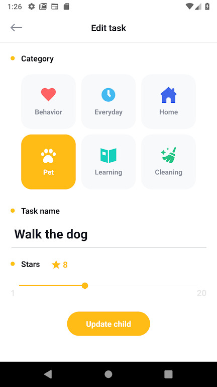 应用程序最重要的功能是能够为孩子创建面板。让孩子和父母的账户同步很简单,只需扫描二维码即可。孩子的面板可以让你完成每天的任务。完成任务后,父进程会自动收到通知。父进程可以确认或拒绝任务。