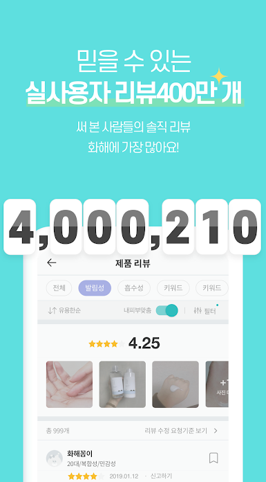 和解是一款化妆品鉴定推荐应用,评论-成分-排名报告和购物都一次完成!韩国有700万人使用基本化妆品应用。