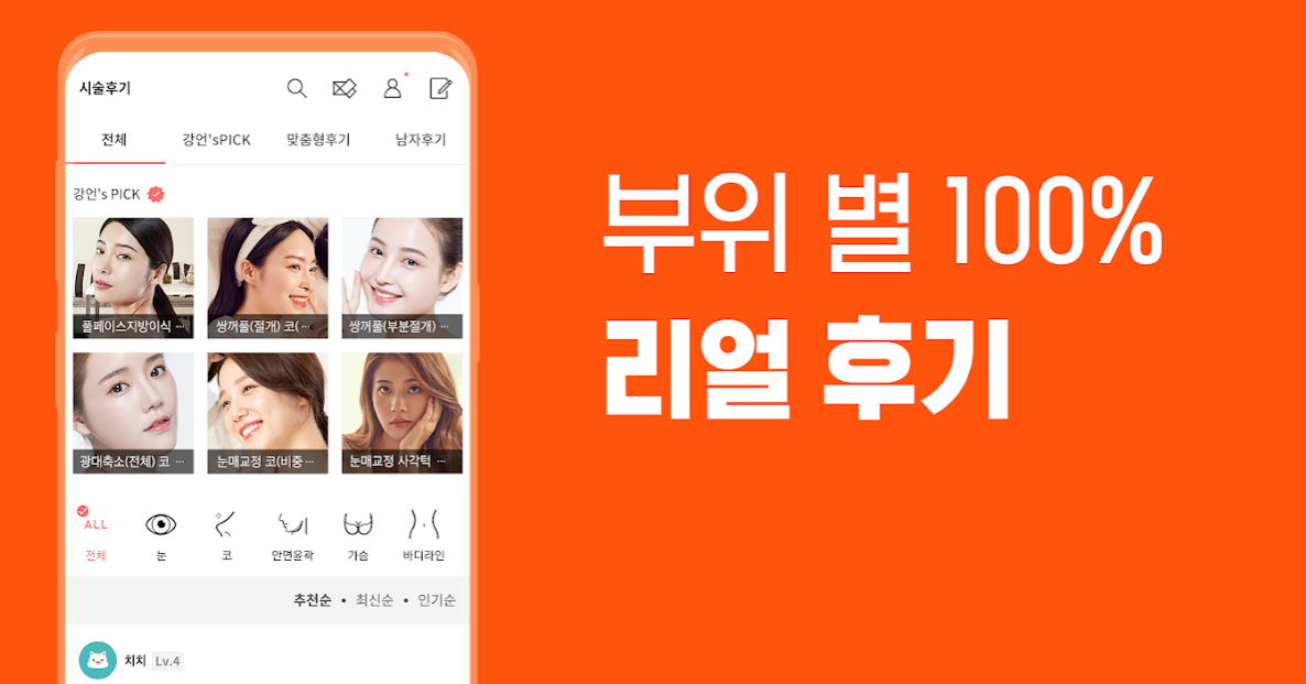 3、100,000个真实事件评论,查看并选择一个透明评估,该评估只能由通过“ Gangnam Unni”应用程序进行过手术的人使用。