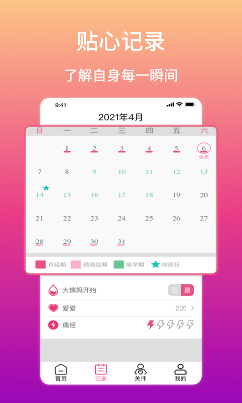 1、贴心提醒:日历的贴心提醒事项,让用户不再担心大姨妈突然造访;