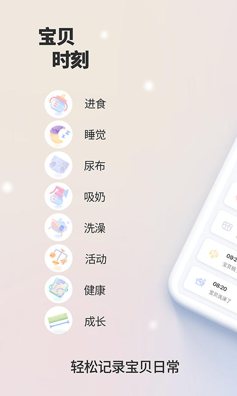 宝贝时刻官方安卓版是一款既科学又实用的育儿服务类软件,用户可以将宝贝每一天的动态都记录在软件内,什么时候进食、睡觉、洗澡、活动等等都可以直接记录,并且宝贝时刻app下载后还会提供宝宝每一天的数据图表,帮助用户分析每日孩子的动态。