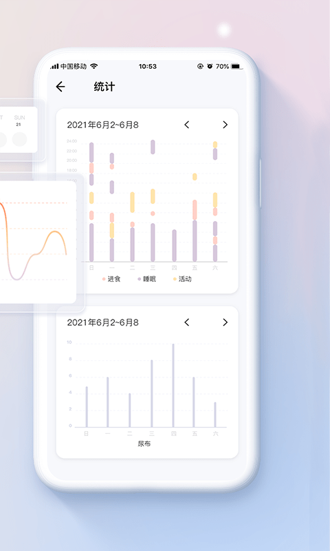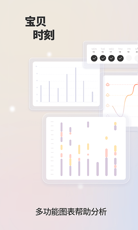 1、为用户提供图表分析的功能,让用户可以一目了然的看到孩子每天每周的动态;