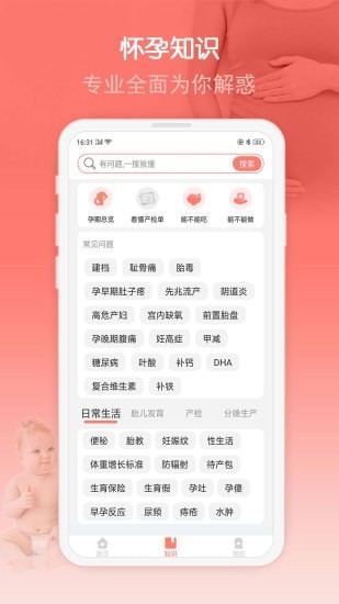 1、在知识板块,我们致力于帮助孕妈妈解决孕期的各种问题,让您的孕期更舒心;