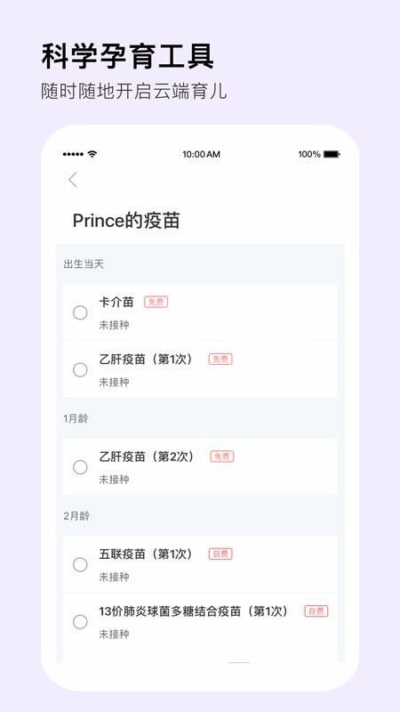 3、贴心的育儿工具,里面为用户设置了疫苗接种方案管理工具,提供多种疫苗计划;