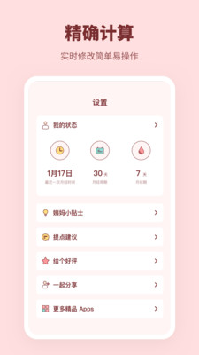 1.姨妈来啦软件帮助您准确预测姨妈的时间,为您带来更多便利,并避免尴尬的境地。
