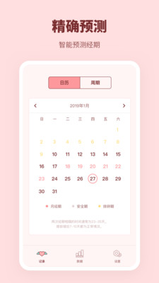 1.姨妈来啦app记录期间的日期,获取下一期的预测日期。