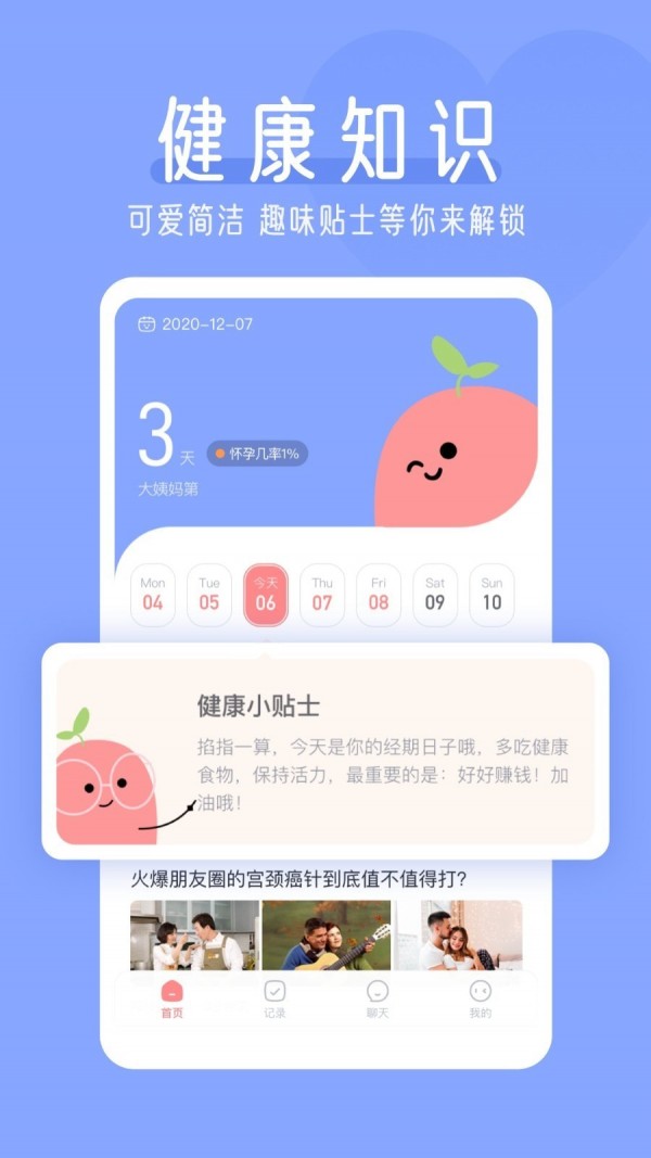 1.快速记录每次经期,直观展示当下状态。