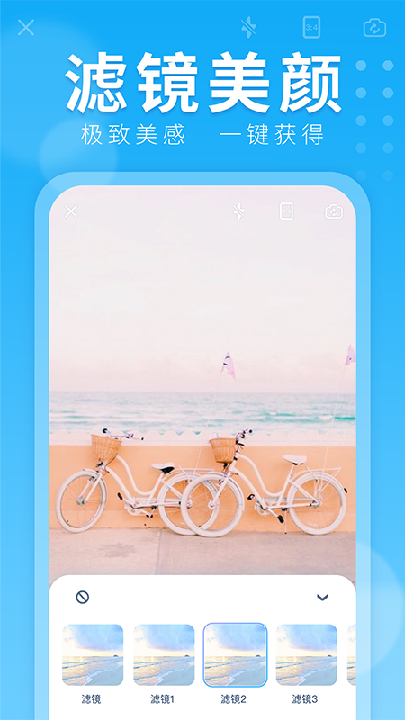 2.一键上传照片添加水印,方便快捷,支持多个滤镜,易于拍摄杂志大片。