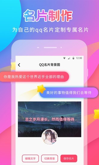 有需要的用户快来下载使用吧,在这里大家可以任意选择你喜欢的壁纸,头像也为大家准备了很多,还有超多个性签名,只需要这一款软件就足够了。