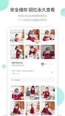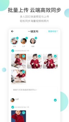 5.下载后一键将他们的照片同步到云端存储,能够邀请更多亲友,一同观看、发布回忆。