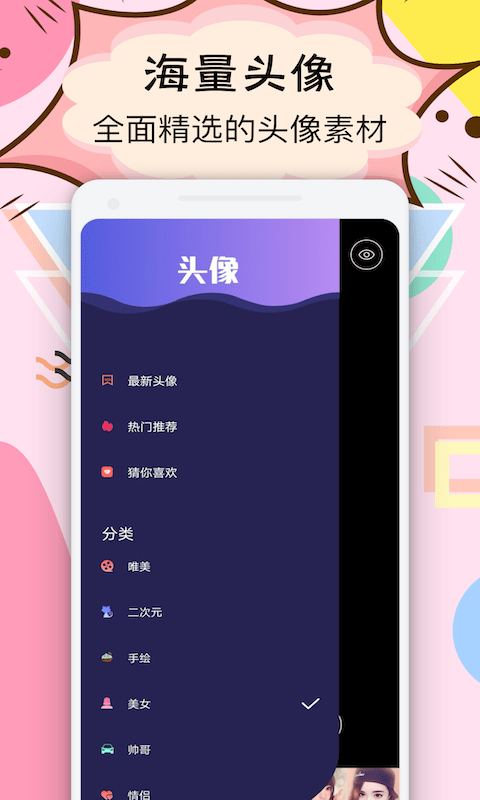 2、拥有多种不同风格的头像素材,用户可以根据分类免费挑选自己的专属头像;