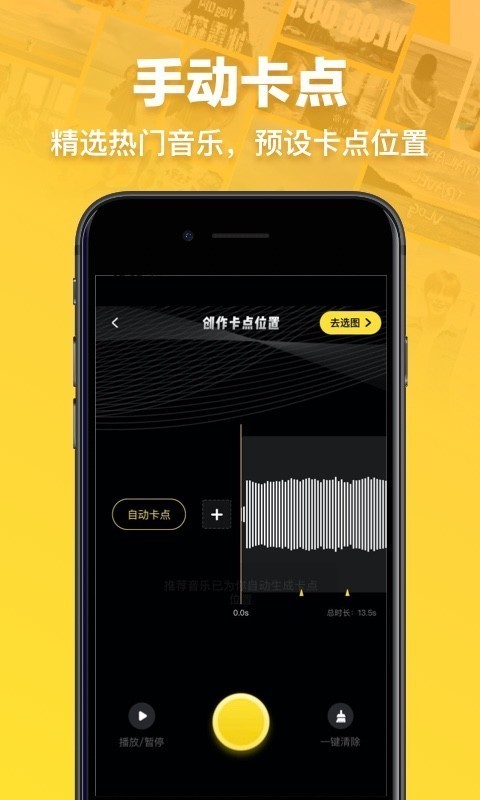 2.卡点视频制作app可自由添加音乐,制作比较火的卡点视频,这款应用简单轻松。