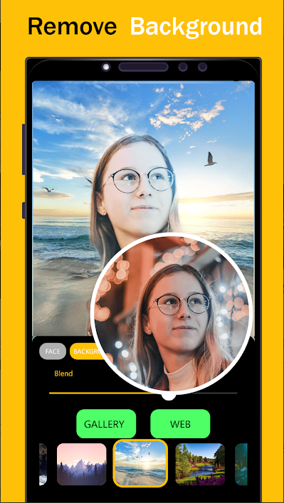 自动剪切照片背景、照片背景更换器、自然照片编辑器,简单的背景去除剂和剪切照片背景,一步法魔术切照片背景、自动切背景、Web搜索以从Internet选择任何背景照片。