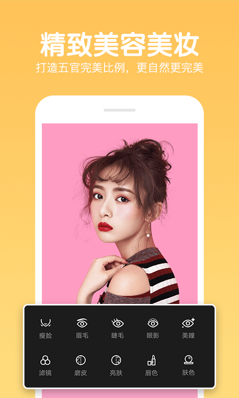 1、简单的美容、美颜自拍相机,一键美化用户的自拍,还有调节肤色的效果;
