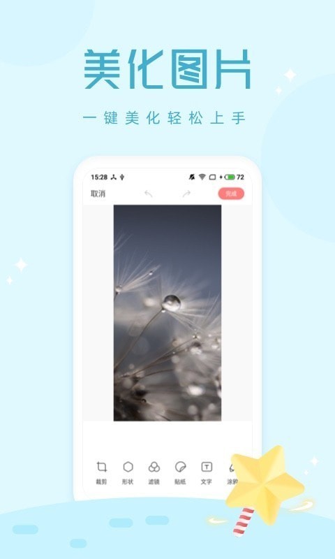 拍照大咖app是一款便于用户操作的照片编辑软件,为用户提供了美颜相机和专业的修图功能,用户可直接在首页看到拍照、图片美化、图片拼接等等的版块,让用户无需使用专门的相机,用手机也能拍出精致好看的美照,拍照大咖下载后用户还能在照片上进行涂鸦创作,让图片更活泼。