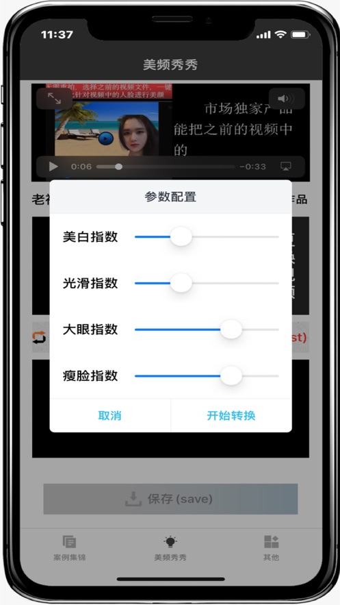 1.本软件支持一键选择视频,点击即可轻松选美面部。