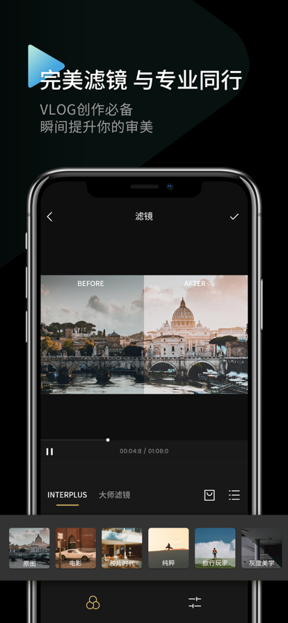 1. 无论是照片或者是视频编辑,都可以使用大师滤镜及InterPlus滤镜,且分段添加不同滤镜;