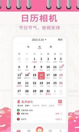 1.日历相机app安卓版集成了备忘录、水印摄像头、日历工具、备忘录录制等功能。