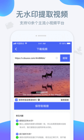 水印宝app可以轻松帮助用户去除照片和视频中的水印,采用无缝水印去除技术,不会影响图片和视频的质量,并且软件非常小巧,功能很多,支持变速、修改封面、倒带视频、加字幕等,让用户编辑更轻松。你还在等什么?快去下载体验吧!