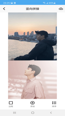 垂直拼接:从手机上导入拼图所需的工具,一键形成垂直的长幅图片。