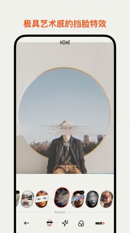 nome相机可以随时随地拍照,拍照的时候很神奇,反社恐挡脸摄像头,解决你内心的社恐,让你解放自我,不再担心尴尬自拍,艺术感的挡脸效果,用不同的方式表达自己,可以放心使用。