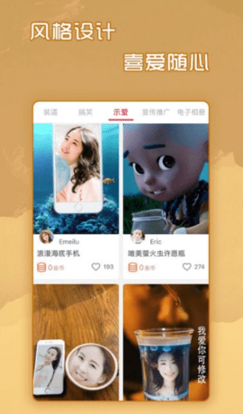 4、视频题材多样:目前的模板包括微信商业营销、视频安装力量、电影改编、文字情绪表达、视频告白、恶搞等。总有办法满足你现在的需求