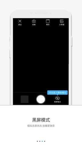 1、[黑屏模式]点击摄像头界面的小眼睛,手机屏幕会变暗,点击屏幕时不会有反应,这是一种真正的防触摸机制。酒吧、夜总会和KTV不再害怕失败。他们还可以秘密记录证据,并在没有遇到骚扰时坚决捍卫自己的权利。