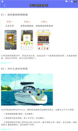 小男孩去水印app是一种方便实用的短视频去水印方法。它易于操作和高效,支持各种平台和格式。该软件不限制视频的大小和持续时间,并使用特殊技术在不影响视频质量的情况下删除水印。对于不同的水印,有许多不同的处理方法。水印清洗用于复杂条件下的水印处理。没有水印痕迹,只需删除一个按钮即可删除水印,高效方便。它支持删除水印、各种视频编辑和编辑功能,并为视频添加特殊效果和过滤器。用户都可分享自己使用的方式进行交流。所有功能都是免费的。