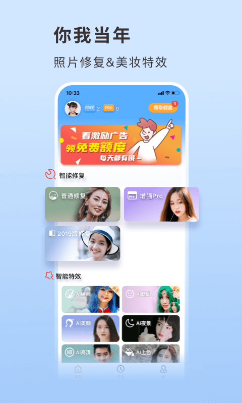 你我当年app破解版是一款高科技的ai修复照片软件,在以往照相机画质模糊不清的时代,老照片的很多细节都难以察觉,人物的脸庞也随着时间的推移渐渐模糊,想要把老照片的画质变得高清,想要更清晰地看到爷爷奶奶年轻时的面容,这款你我当年app破解版都能满足你的需求。