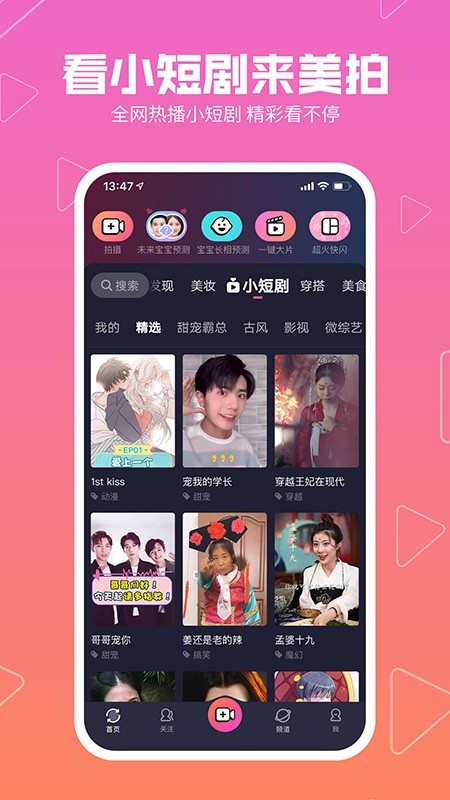 精致美颜,萌系道具,品质滤镜,短视频自拍神器。