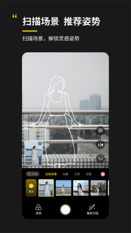 2、只要瞄准你想拍摄的场景,扫描,并获得与场景相关的姿势的灵感