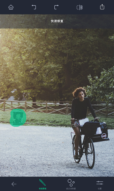 5、在不需要的内容上作画,用绿色突出显示。要调整画笔的大小,请单击屏幕右下角的“设置”