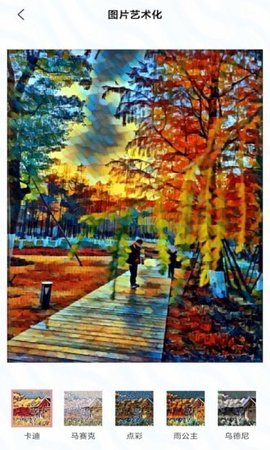 选取已有的人物、风景照片、各种名画风格的图片,进行转换生成。一键就有了主风格的作品。