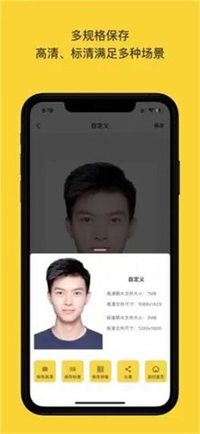 1、黄鸭证件照只需要一张清晰的正面照片就可以帮你轻松处理身份证照片,并配有大量定制剪裁尺寸,非常方便。
