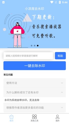小凉席去水印app能很好地满足用户的需求,操作简单,使用非常方便,它还可以直接解析快手的视频,然后从图像集中去除水印,它支持视频去水印,操作简单可以轻松去除视频和图像的水印。