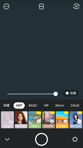 1、点击屏幕上的任何地方拍照。可以在界面的右下方选择滤镜效果。通过在屏幕上左右滑动来改变效果。滤镜效果也可以添加周边模糊和圆角暗角。