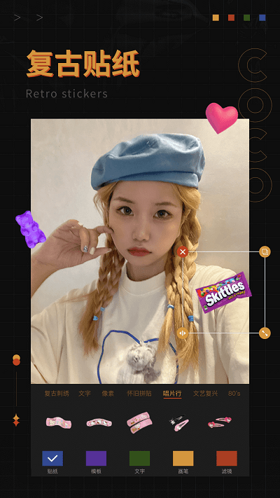 4、丰富贴纸:这里有1000+精选复古童趣贴纸,可以自由选择不同的模板。