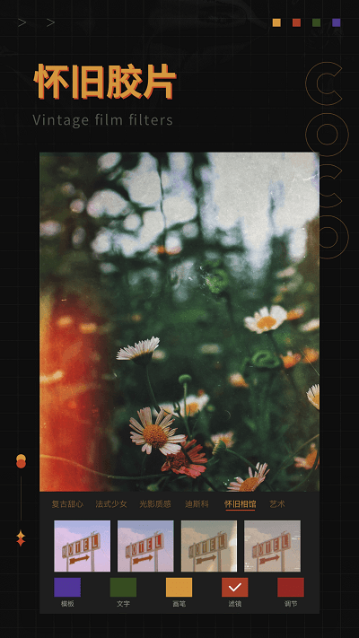 2、滤镜管理:模拟复古质感的同时星光闪闪,帮助用户分分钟变成美丽小公举。