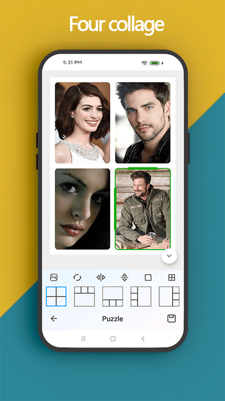 2.一张或多张图片连接在一起,拼图的布局可以随意调整,因此拼图不再僵化。