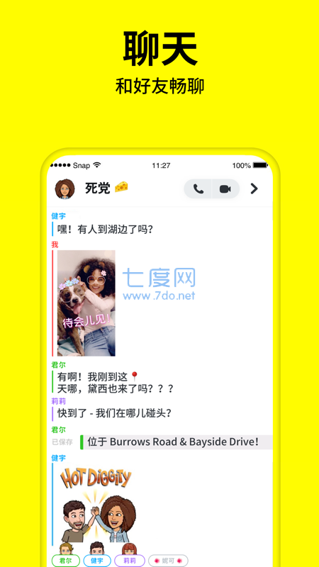 2.拍摄照片或视频,添加字幕、滤镜、镜头、表情符号,并与你最好的朋友和家人分享。