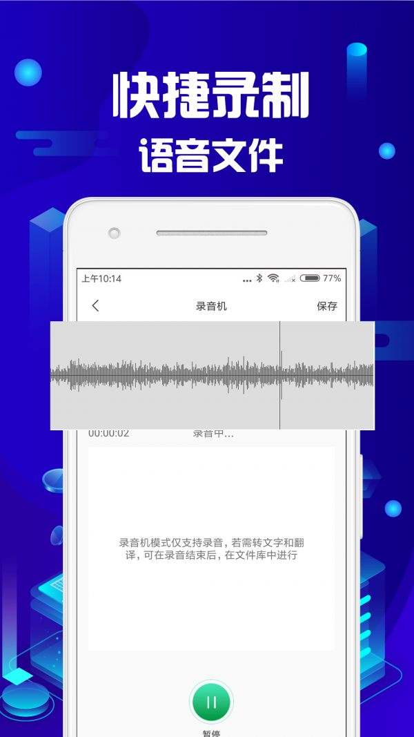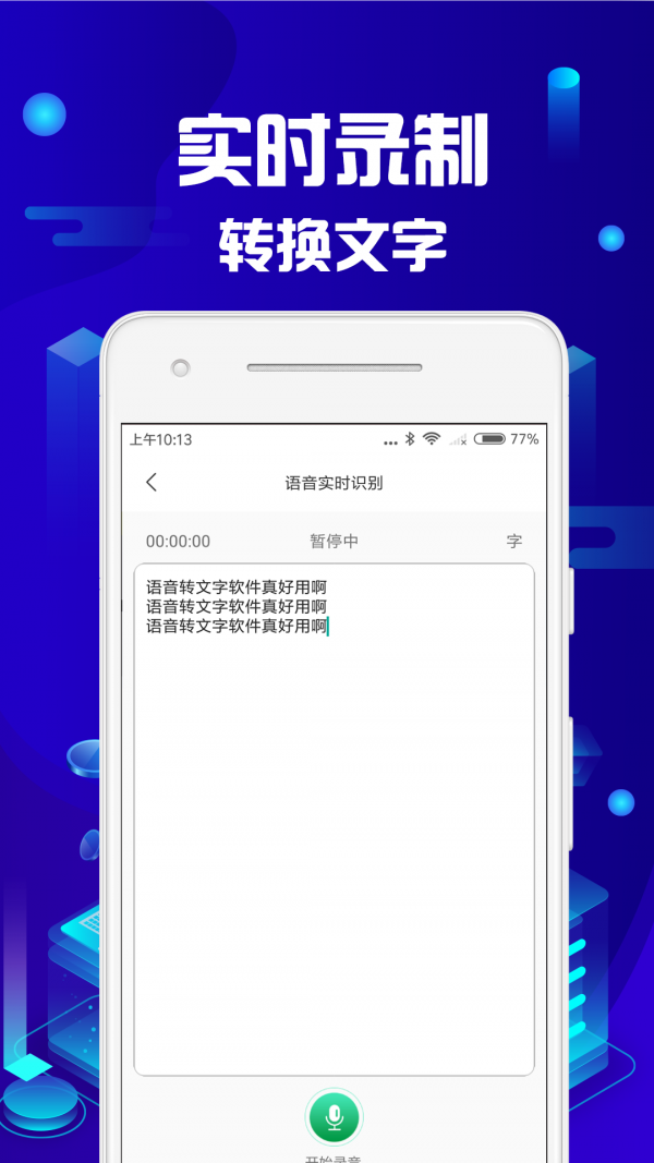 1、方便用户随时在线开启录音功能,实时为你转换成文字。